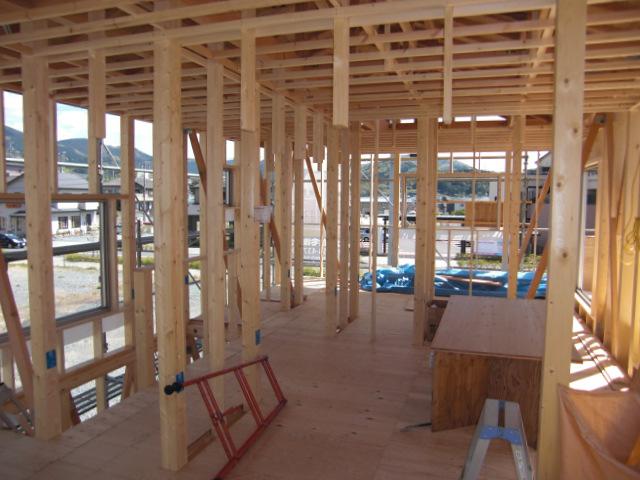 木工事が進んでおります!土地(53.56坪)建物(35.95坪)オール電化・照明・カーテン・太陽光発電付き・税込で2,373万円で販売も開始しました!お気軽にお問い合せ下さい。