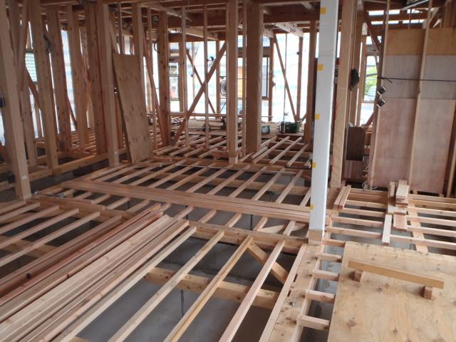 先週の台風が心配でしたが、外壁下地シート貼りが完了し構造材や下地木材を雨に濡らす事がなくなり、内部造作を進めれる様になりました!今週も内部工事を進めて行きます。