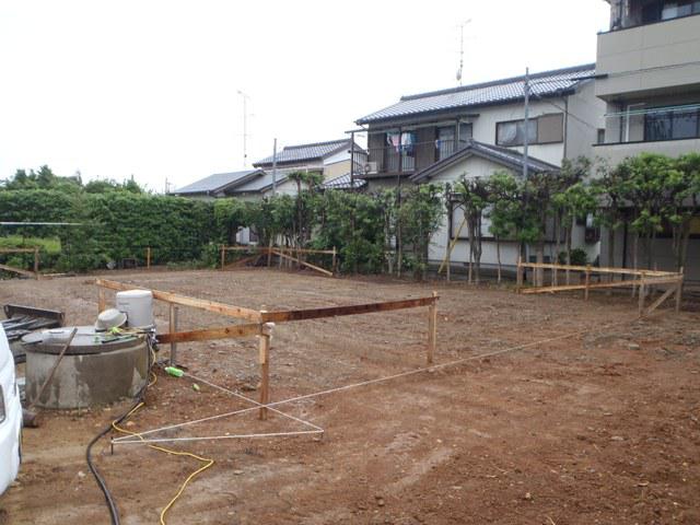 敷地の盛土・整地を行いまして、基礎工事に着手致しました!建物の基準となる位置・高さ(丁張り)を出し砕石地業、鉄筋組みと進めて行きます。