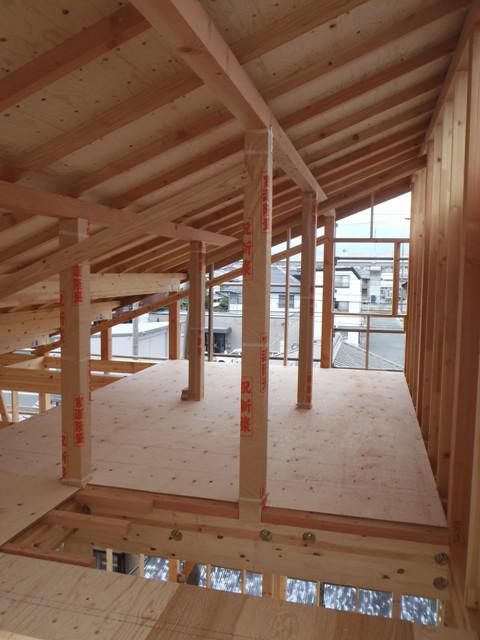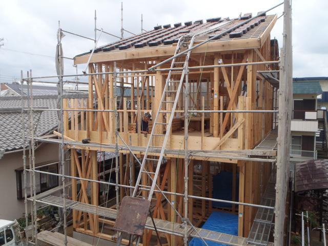 ☆先週の工事☆ 木工事(床下地、サッシ開口、他) 屋根工事(瓦葺き) ☆今週の予定工事☆ 木工事(1階床下地組み、サッシ開口、他) 屋根工事(瓦葺き) 防腐防蟻処理
