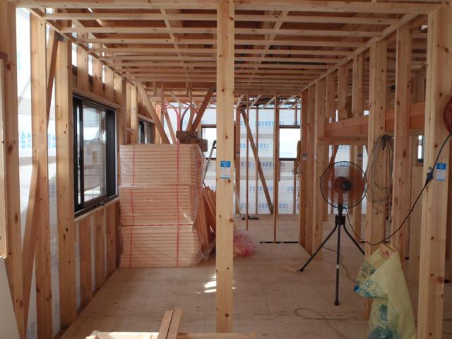 ☆先週の工事☆ 木工事(軒天下地組み、ケイカル板貼り、天井下地組み、他) ☆今週の予定工事☆ 木工事(2階床下地ボード貼り、天井断熱材入れ、他) 内部電気配線・配管