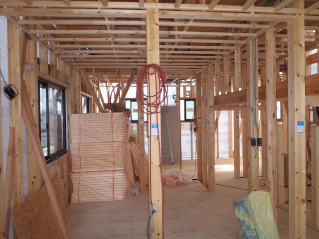☆先週の工事☆ 木工事(2階床下地ボード貼り、天井断熱材入れ、他) 内部電気配線・配管 JIO外装下地検査 ☆今週の予定工事☆ 木工事(2階床下地ボード貼り、天井断熱材入れ、他) 外壁工事(コーナー材スターター金具取付、サイディング貼り)