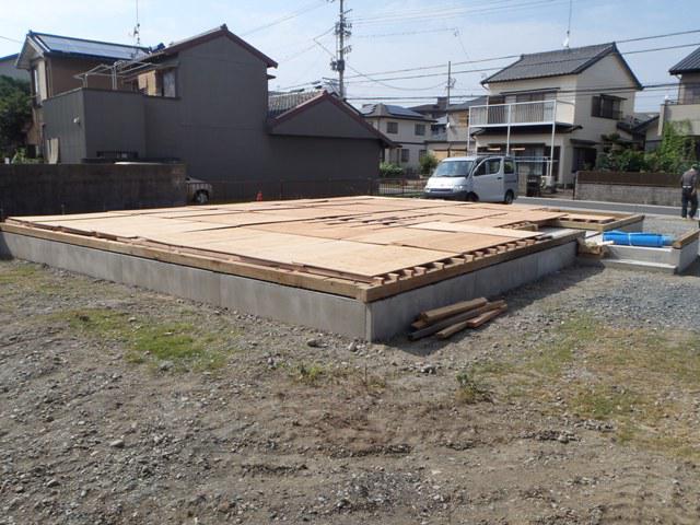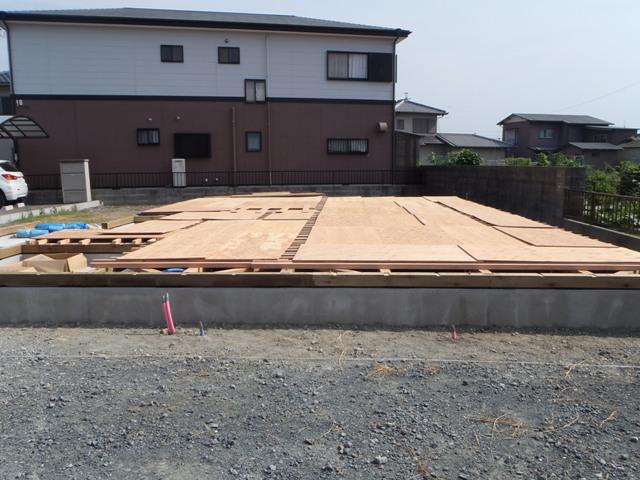 ☆先週の工事☆ 基礎工事(型枠解体、埋め戻し) 土台据え付け、床下地 上棟準備 ☆今週の予定工事☆ 上棟準備 上棟 木工事(筋カイ・間柱入れ、構造金物取付、 他) 先行足場組み