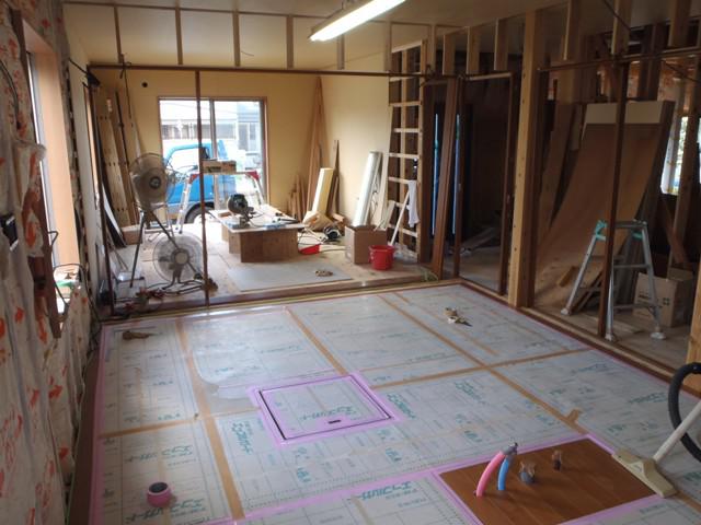 ☆先週の工事☆ 木工事(1階床無垢フローリング貼り、壁下地胴縁打ち、他) 外部足場解体 外部給排水・雨水配管 ☆今週の予定工事☆ 木工事(1階床無垢フローリング貼り、壁下地胴縁打ち、他) 外部給排水・雨水配管