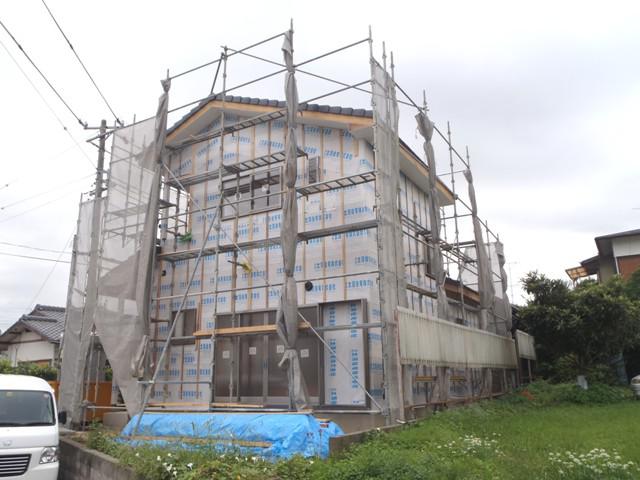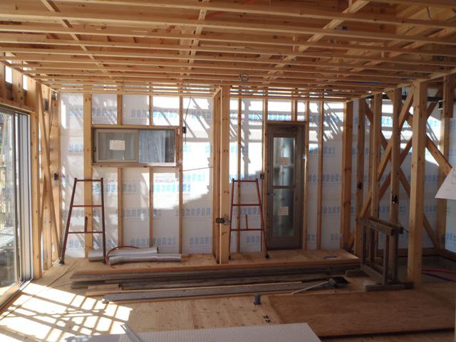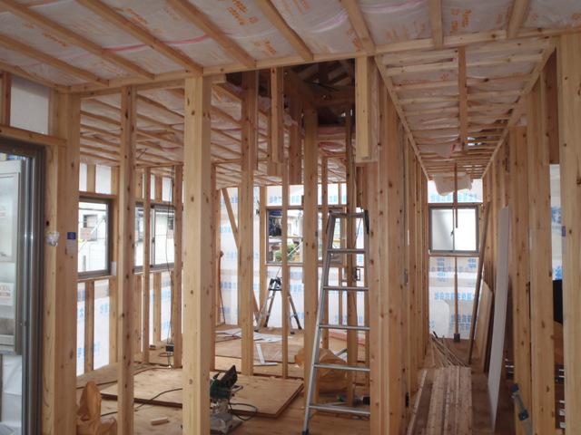 ☆先週の工事☆ 木工事(外壁下地、軒天下地組み及びケイカル板貼り、他) JIO外装下地検査 ☆今週の予定工事☆ 木工事(軒天ケイカル板貼り、床フローリング貼り、窓枠取付 他)