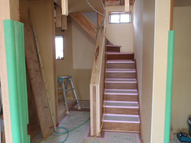 ☆先週の工事☆ 木工事(階段造作、幅木・廻子取付、2階建具吊込、和室 玄関天井、化粧造作 ☆今週の予定工事☆ 木工事(和室造作、他)