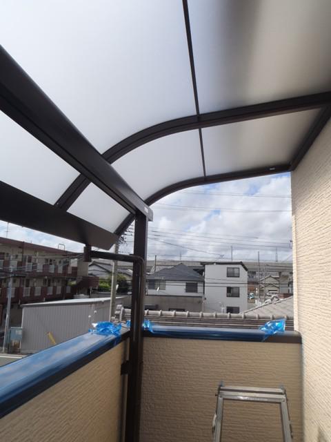 バルコニー上にテラス屋根が取り付けられました!先週より内装クロス工事に入っております!