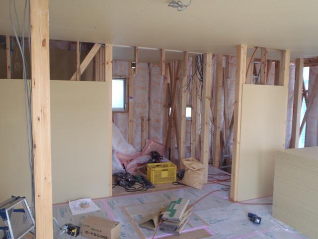 ☆先週の工事☆ 木工事(1階床フローリング貼り、床養生敷き、窓枠取付、他) ☆今週の予定工事☆ 木工事(2階壁ボード貼り)