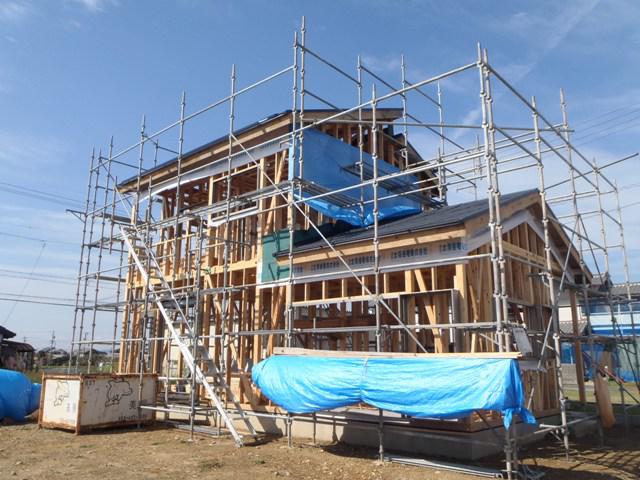 ☆先週の工事☆ 木工事(下地合板、天井下地組み、天井下地組み、サッシ取付、 他) 保証機構JIO(構造検査) 透湿防水シート貼り ☆今週の予定工事☆ 木工事(軒天下地組み、ケイカル板貼り、他)