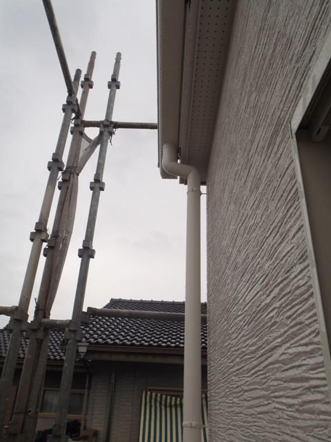外部換気扇フード類、テレビアンテナ取り付け、太陽光発電配線引き込みが完了し、外部足場の解体へ入っております。