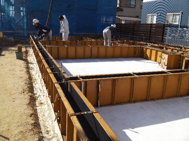 ・立ち上り部型枠組み及びコンクリート打ちを終え来週、型枠解体基礎 周り埋め戻し整地し、基礎工事完了です。 ・上棟準備に入り土台据え、1階下地組みと予定しています。