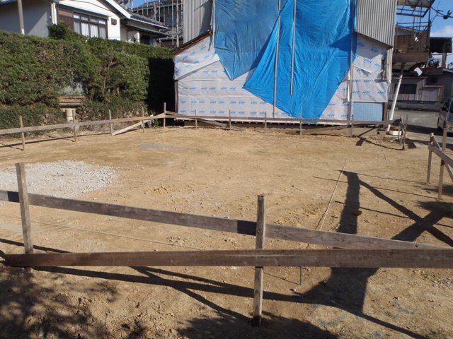 ・地盤調査の結果報告書より、しっかりと地盤強度が確認できました。22日より基礎工事に着手し、丁張(基礎の基準となる位置、高さ出し)を行い、掘削・砕石地業と進めています。