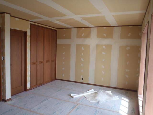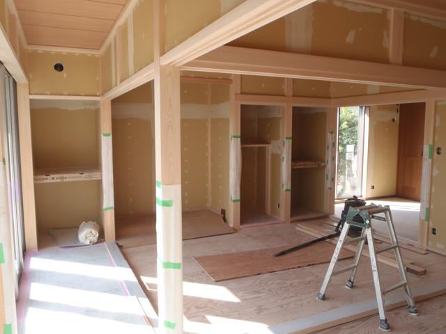 内装木工事が完了しまして、内装クロス工事へと移って行きます。 同時に外部給排水工事、電気・衛生器具取り付けに入って行きます。