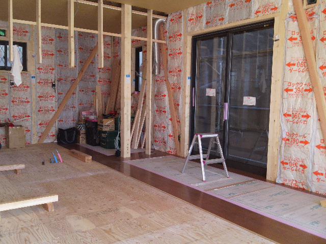 2階床ボード捨て貼り、フローリング貼りを進めています。