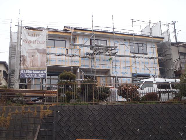 ・木工事、壁断熱材入れ、外部下地材打ち、軒天下地及び