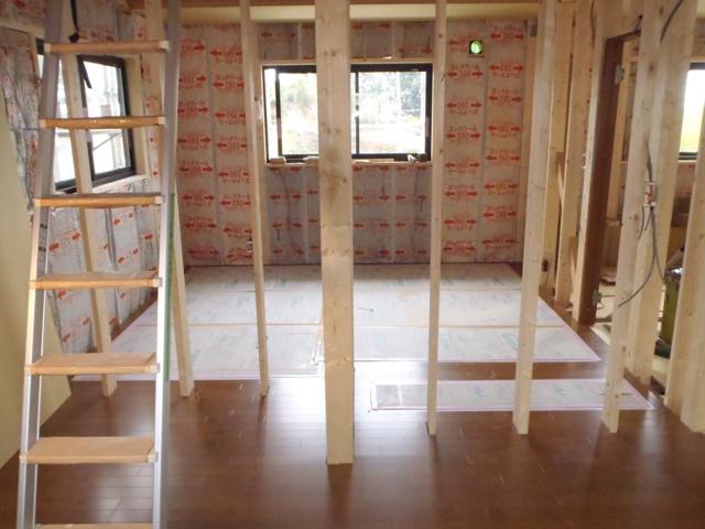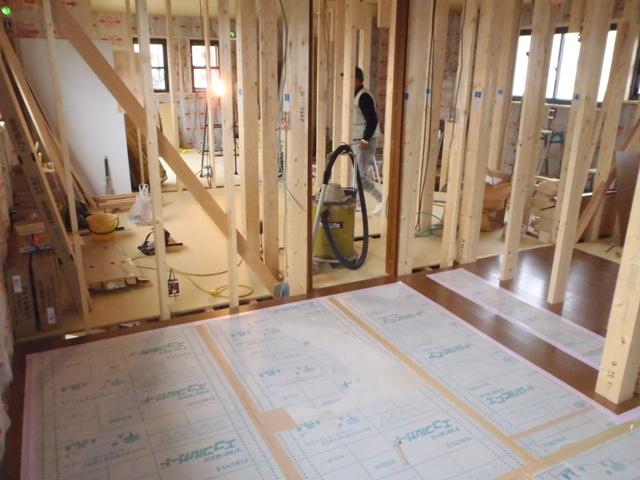 ☆先週の工事☆ 木工事(床ボード捨て貼り、フローリング貼り、他) ☆今週の予定工事☆ 木工事(フローリング貼り、開口枠取付、他) 外壁工事(平部サイディング貼り)