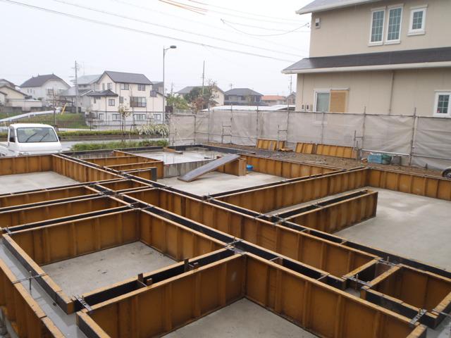 ☆先週の工事☆ 基礎工事(立ち上がり型枠組み及びコンクリート打ち、養生、 型枠解体、埋め戻し整地、他) ☆今週の予定工事☆ 構造材搬入、土台据え、床下地組み、上棟準備 上棟 先行足場組み