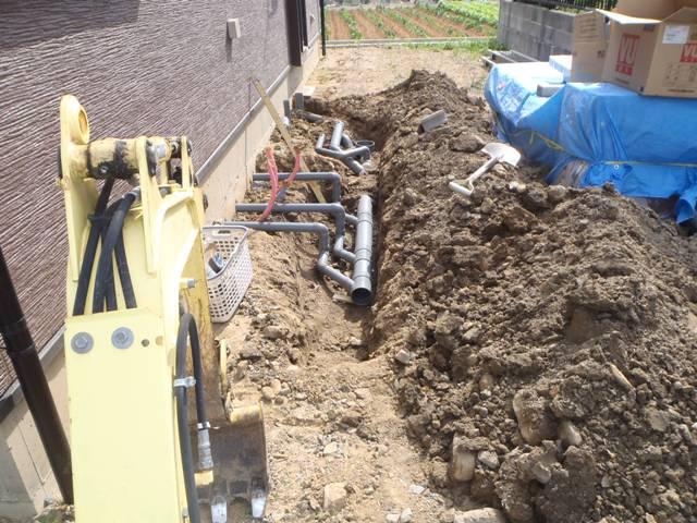 ました、外部給排水管 埋設、玄関・ポーチタイル工事と外部