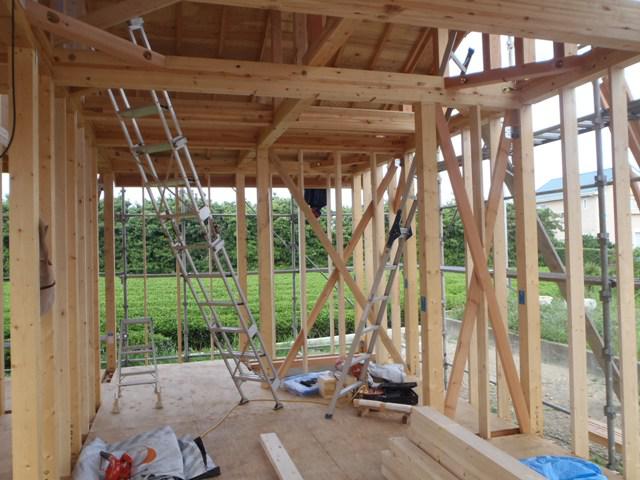 ☆先週の工事☆ 木工事(ベランダ下地、構造金物取付、2階床下地(根太・合板) サッシ開口造作、他) 屋根工事(瓦葺き、他) ☆今週の予定工事☆ 木工事(サッシ開口造作、サッシ取付、他)