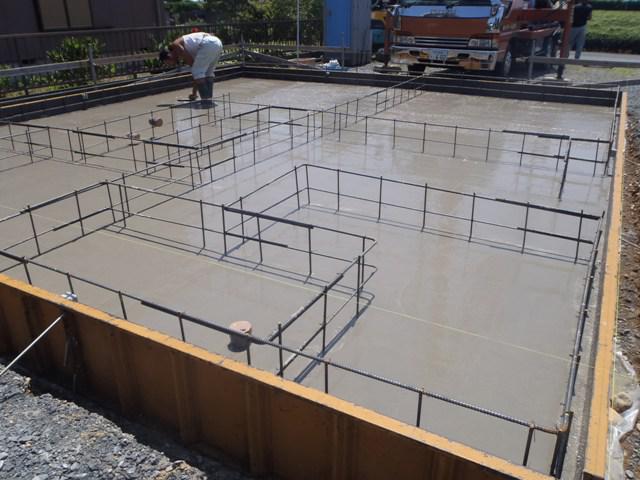 ・基礎工事、基礎骨組となる鉄筋を組みあげ、保証検査機構JIO 配筋検査、鉄筋組み状況、コンクリートと鉄筋との間隔など立会い 確認検査しベースコンクリート打ち、布部立ち上がり型枠組み、 ボルト類設置し立ち上がり部コンクリート打ちまで行いました。