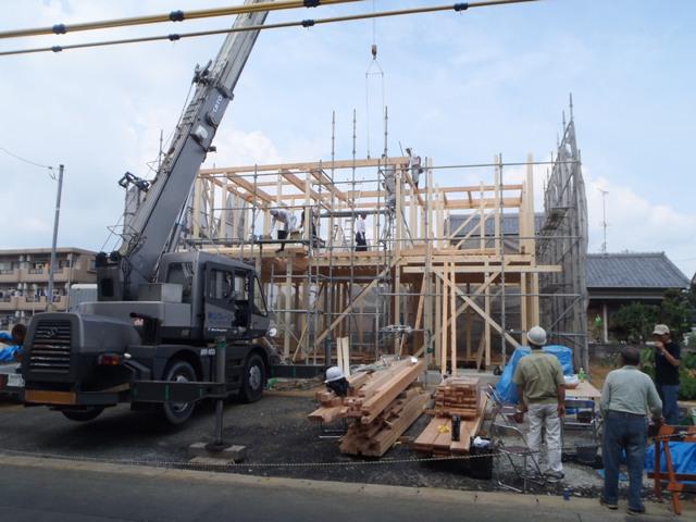・上棟おめでとうございます。天候に恵まれ屋根下地まで進める ことが出来、上棟式餅投げには、多くの方に集まって頂きまし た。 ・木工事完了まで、棟梁・野末さんに腕を揮って頂き、 工事を進めさせていただきます。