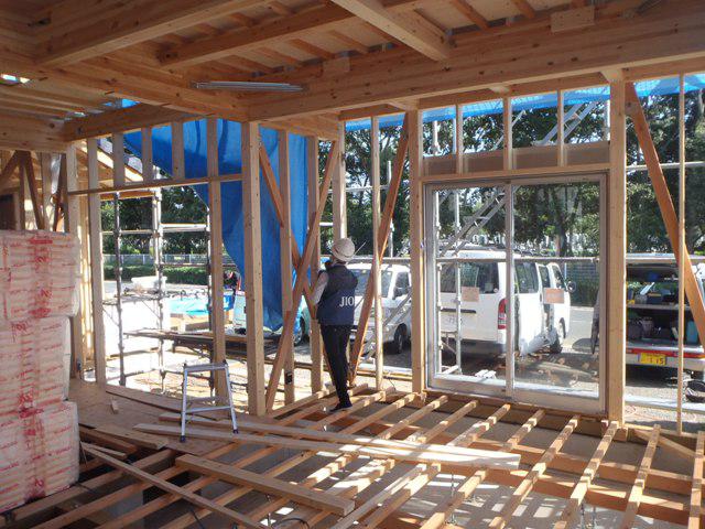木工事(天井下地組み、1階床断熱材入れ、下地合板本締め、