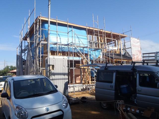 機構(中間検査)を受け合格となり、外壁下地シート貼り、