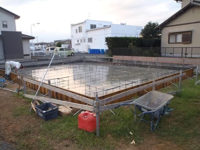 ・基礎工事、ベース型枠組み、鉄筋組みを行い、保証検査機構 JIO・配筋検査を受けベースコンクリート打ちを行いました。 ・来週、立ち上り部型枠組み、アンカーボルト類設置しコンクリート打ちを 予定しています。