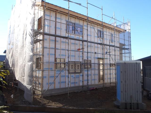 ・木工事、外壁下地材打ち、軒天下地組み、2階天井 ボード貼り、断熱材入れを行っています。内部給排水、電気 配線なども進めています。 ・当社冬季休暇を28日より1月5日まで頂きます。