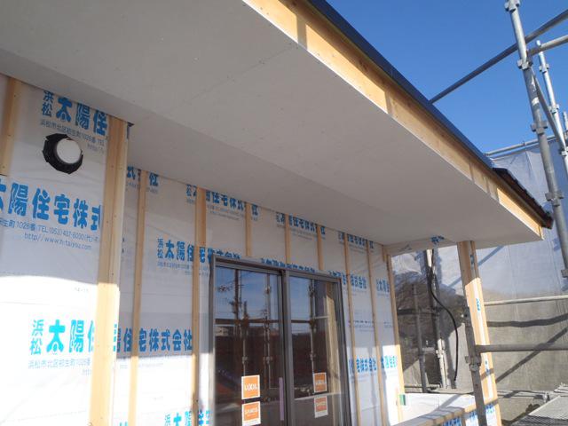 シート貫通部の防水処理状況)に合格し、軒天ケイカル板貼り
