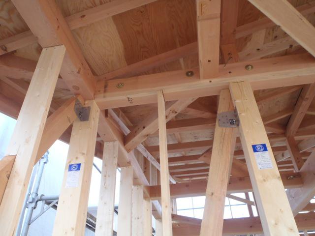 ☆先週の工事☆ 木工事(構造金物取付、下屋根下地、床下地材、本締め、 サッシ開口造作、他) 防腐防蟻処理 ☆今週の予定工事☆ 木工事(サッシ開口造作、サッシ取付、屋根断熱材下地、他) 保証機構・検査機構、中間検査