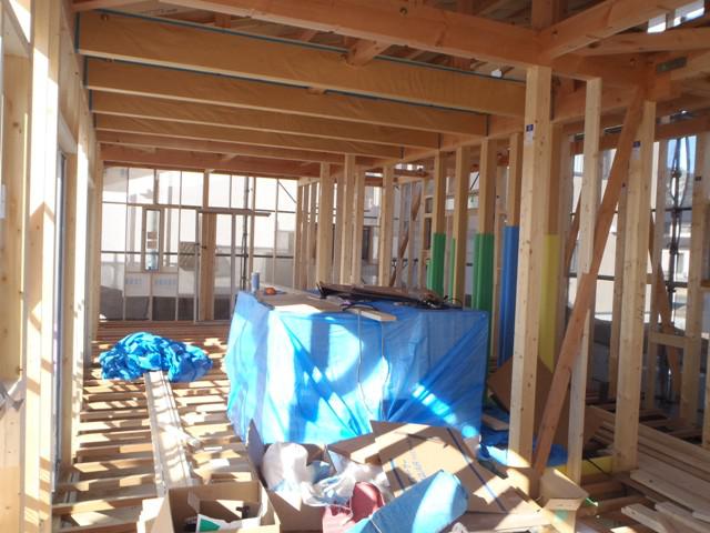 ☆先週の工事☆ 木工事(サッシ取付、外壁下地、床断熱材入れ、下地合板 本締め、他) ☆今週の予定工事☆ 木工事(外壁下地、床断熱材入れ、下地合板本締め、UB下地 他) 吹き抜け断熱工事 内部配管 外壁下地シート貼り 保証機構、外装下地検査