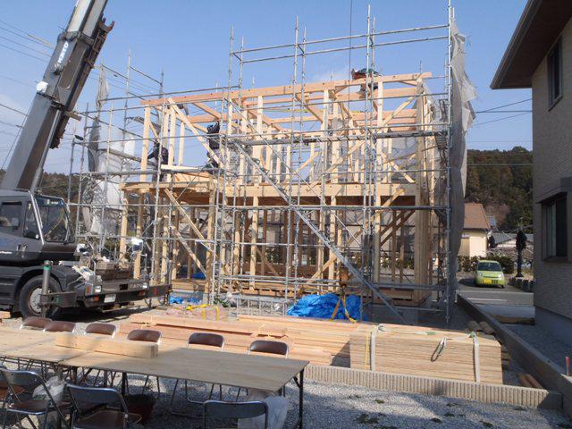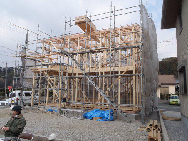 ・上棟おめでとうございます、屋根下地、筋交い・間柱入れと 工事を進められ、上棟式を行えることが出来ました。 18日、屋根業者にて下地板金、カラーベスト葺きが完了しました。 ・棟梁、来週半ばより、木工事に取り掛かります。