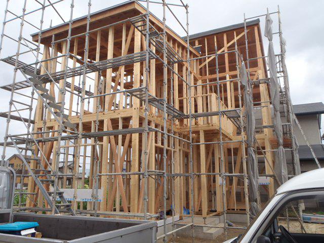 ☆先週の工事☆ 木工事(筋カイ・間柱入れ、構造金物取付、床下地、他) 屋根工事 ☆今週の予定工事☆ 木工事(構造金物取付、床下地、ベランダ下地、サッシ開口 サッシ取付、他)