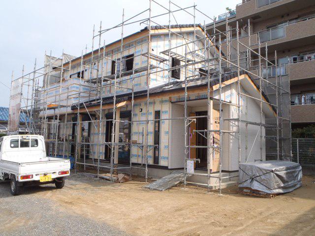 ・外壁サイディング材貼りが建物6割程進んできました。 木工事、