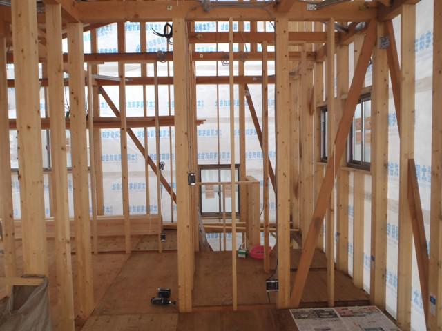 ☆先週の工事☆ 木工事(天井下地組み、軒天下地組み、軒天ボード貼り、他) 外壁下地シート貼り 内部電気配線・給排水配管 ☆今週の予定工事☆ 木工事(天井下地組み、軒天下地組み、軒天ボード貼り、他) 内部電気配線
