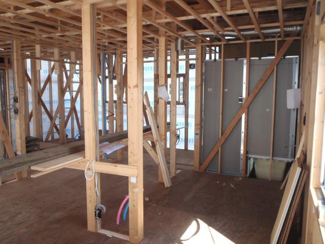 ☆先週の工事☆ 木工事(軒天下地組み及び軒天ケイカル板貼り、2階天井断熱材 入れ、及びボード貼り、他) 外壁工事(サイディング下地、サイディング貼り、他) ☆今週の予定工事☆ 木工事(1階天井ボード貼り、壁断熱材入れ・窓枠取付、他) 外壁工事(サイディング貼り、他)