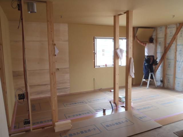 ☆先週の工事☆ 木工事(ドア・開口枠取付、壁PB・下地合板貼り、他 ☆今週の工事☆ 木工事(ドア・開口枠取付、壁PB・下地合板貼り、他) 軒天塗装 板金(破風・鼻隠し板金、軒樋・竪トイ掛け) TVアンテナ・外部器具付け キッチン据付