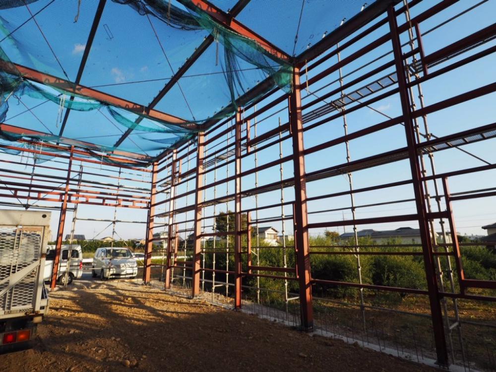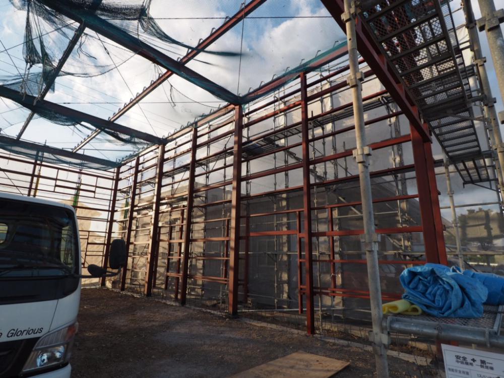 足場を組み立て鉄骨の上棟を行いました!一日でまるっと建物のスケールがでました。