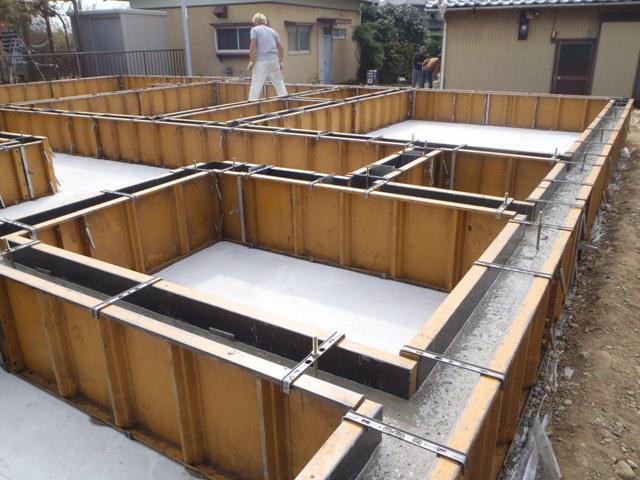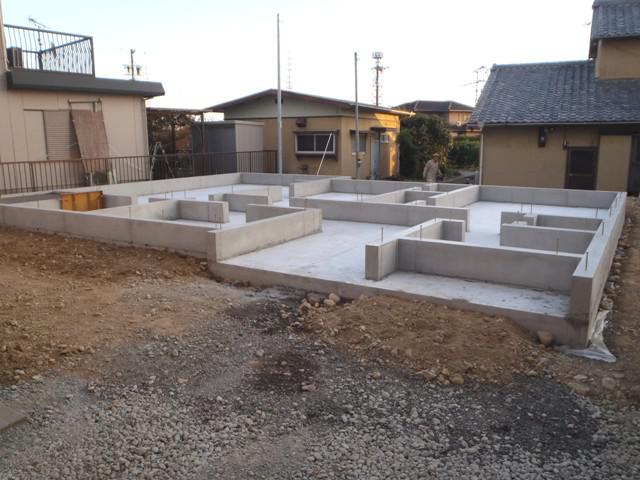 ・基礎工事、型枠解体、基礎廻り埋め戻し整地、ユニットバス下地 コンクリートの色が白くなり強度も出てきています。 ・来週半ばより、上棟準備に取り掛かり、土台据え・床下地 組み、柱・梁、下地木材搬入と進めています。