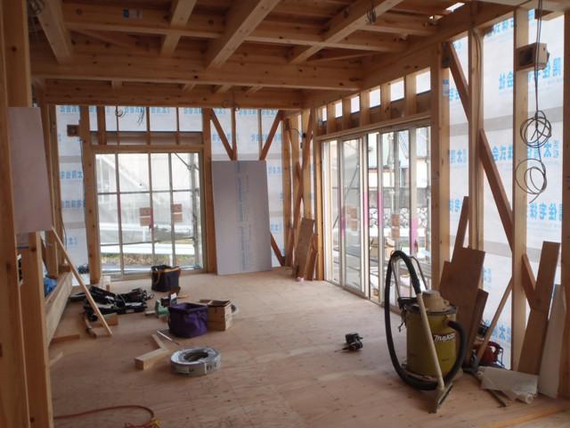 ☆先週の工事☆ 木工事(1階床断熱材入れ、及び下地合板本締め、2階天井 下地組み、及び断熱材入れ、ボード貼り、他) ☆今週の予定工事☆ 木工事(外壁下地材打ち、軒天下地組み及び軒天板貼り、 壁断熱材入れ、2階床下地ボード敷き、他) 保証機構JIO 、外装下地検査