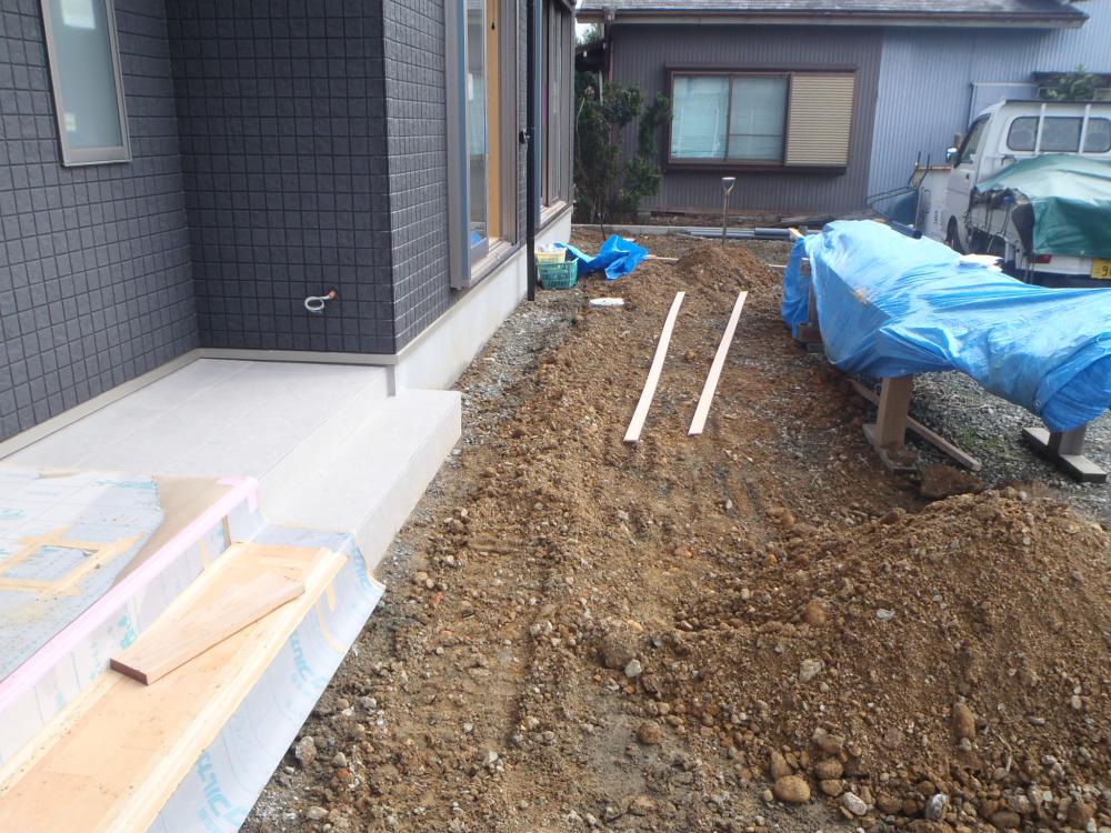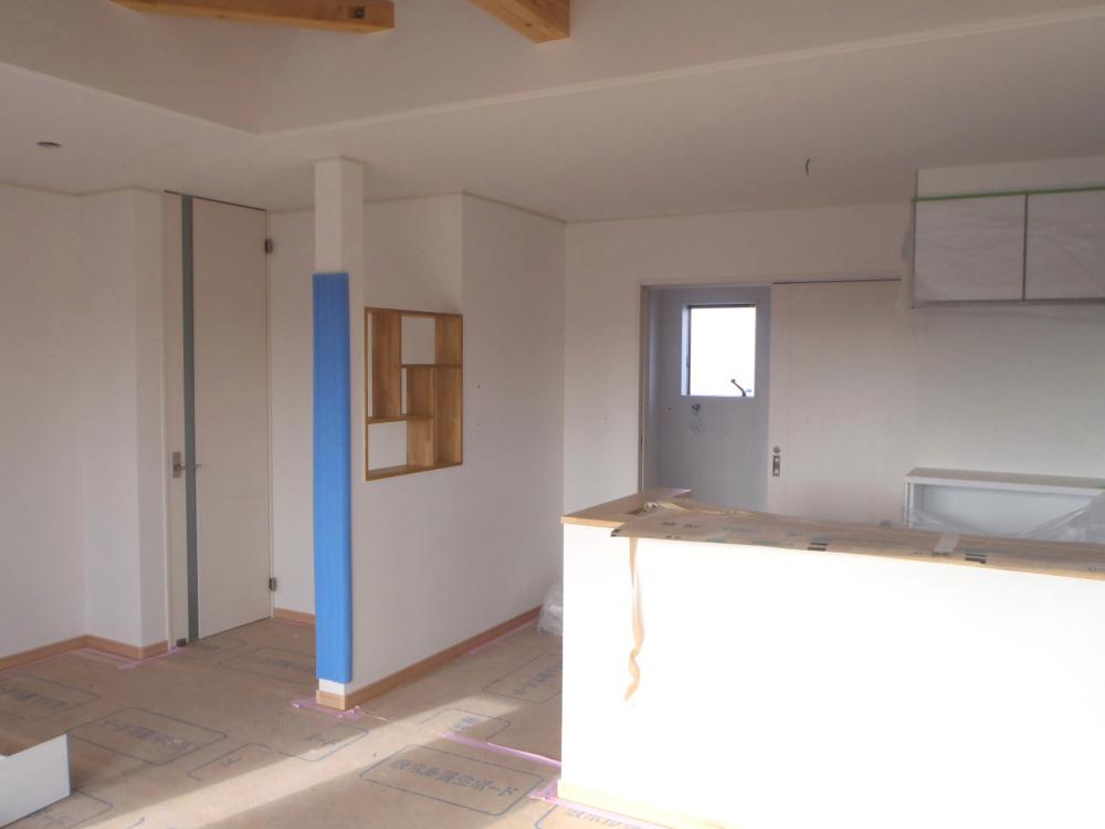 ・外部汚水・雨水埋設し、給水接続後、通水検査し完了となり ます。 内部、英席器具、電気プレート類、照明器具類 設置し、配電盤仕上げ、通電・太陽光連携を進めています。 ・製作家具、階段手摺取付、ハウスクリーニング後、畳み入れ、網戸 入れ、検査機構・完了検査を受けます。