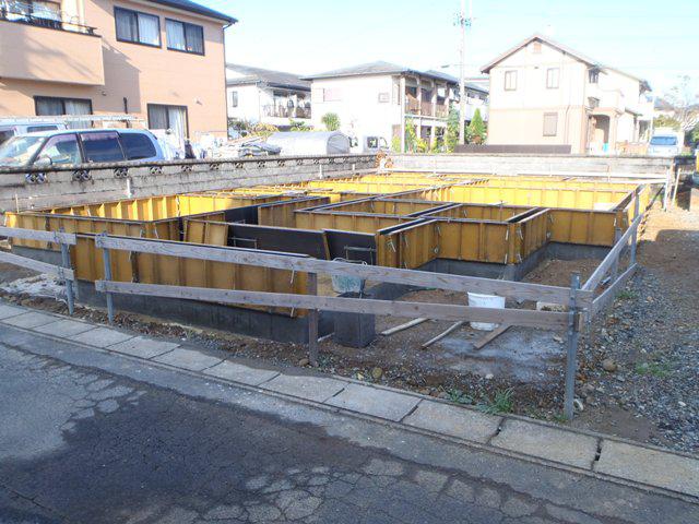 基礎工事(鉄筋組み、ベースコンクリートうち立ち上がり部型枠組み