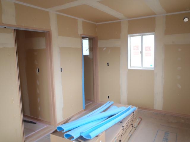 ☆先週の工事☆ 木工事(棚類取付、幅木・廻し縁取付、建具吊り込み、片付け 他) 内装工事(クロス下地、クロス貼り、クッションシート) 玄関・ポーチタイル工事 左官工事(勝手口、エコキュートベース、 基礎幅木) ☆今週の予定工事☆ 内装工事(クロス下地、クロス貼り、クッションシート) 衛生器具、電気器具取付け
