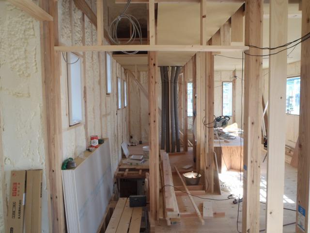 床下地ボード、フローリング貼りと進めていきます。