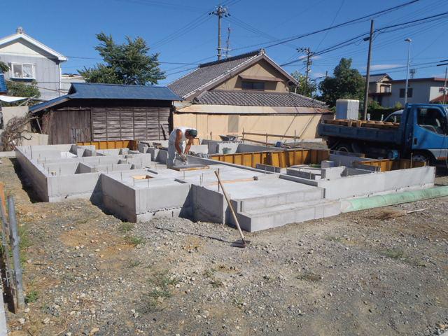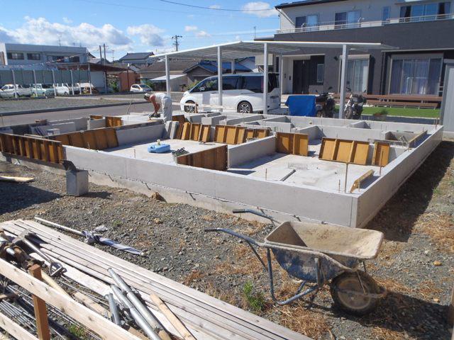 ☆先週の工事☆ 基礎工事(立ち上がり部コンクリート打ち、養生、型枠解体、 玄関・ポーチタイル下地、他) ☆今週の予定工事☆ 構造・下地木材搬入 上棟準備(土台据え、1階床下地組み 他) 外部足場組み