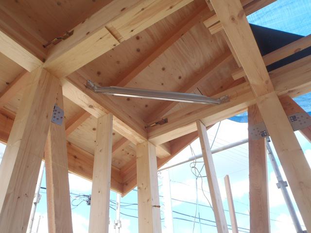 屋根下地まで行うことが出来ました。木工事、間柱・筋カイ
