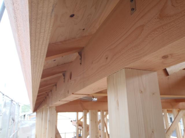 間柱入れ、構造金物取付、他) 屋根下地ルーフィング葺き