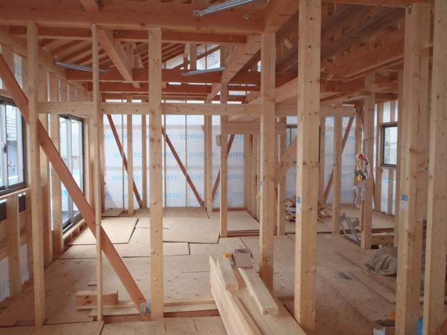行い、2階床下地材、下地合板貼りを進めています。