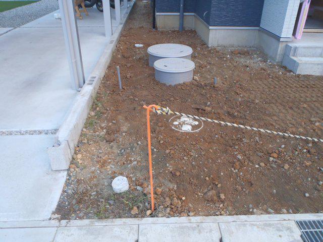 廻し縁取付、他) 外部給排水管埋設、エコキュート下地、